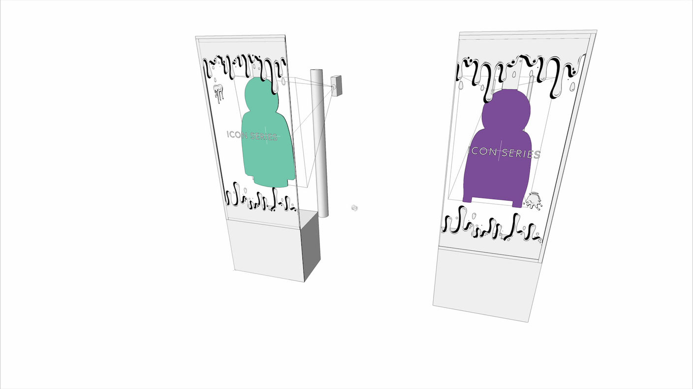 Working with David Title's top secret acrylic vendors, we designed custom cut outlines of Puffer Jackets, applied some rear projection screen to them and hung them from the ceiling. Then we mounted some projectors, hooked them up to our media servers and mapped content on to the acrylic.